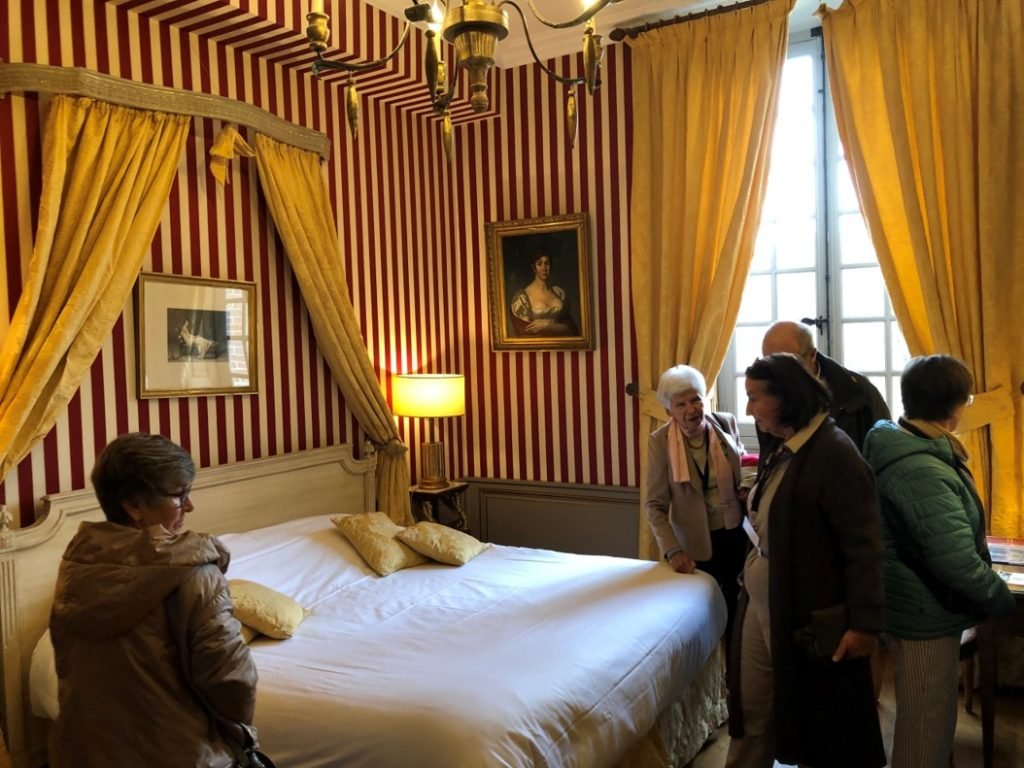 M. et Mme. de Cordon ont accueilli chaleureusement les Amis de Bourron-Marlotte au château de Bourron le 6 novembre. Cette propriété familiale édifiée au XVIème siècle sur les vestiges d’une ancienne forteresse féodale a été transformée par Guy et Estrella de Cordon en hôtel de charme. La visite a débuté au pied de l’escalier de pierre en fer à cheval, récemment restauré. Puis guidés par leurs hôtes, les visiteurs ont admiré les salons du rez-de-chaussée, ornés de tapisseries, de parquets et de cheminées remarquables ainsi que les magnifiques boiseries de la bibliothèque. La visite s’est poursuivie par la découverte des chambres du premier étage, chacune dédiée à une personnalité célèbre liée à l’histoire du château : madame Récamier, Marie Leszczynska. La Bédoyère, le Général de Brye… Quelques anecdotes ont captivé les visiteurs tels que celle relative à la rencontre au château du jeune Louis XV et les parents de la princesse Marie Leszczynska, future reine de France.
