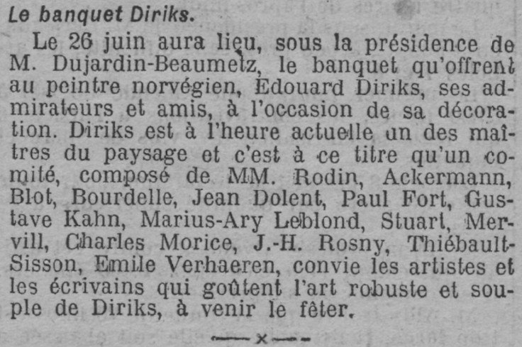 9 – Informations extraites d’un article sur Edvard Diriks dans l’Encyclopédie des artistes norvégiens, volumes I à IV, publiée entre 1982 et 1986.