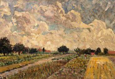 Étant donné les 22 années passées en France et son attrait pour les tendances naturalistes et impressionnistes, il n’est pas surprenant que Diriks ait fait un pèlerinage dans les hauts-lieux artistiques de la région bellifontaine, dont Marlotte ! Il a d’ailleurs laissé plusieurs toiles peintes dans notre commune, dont les exemples présentés ci-dessous. Son appellation de dramaturge des paysages et de peintre des beaux ciels de turquoise et d’argent, poussés par le vent prend toute sa dimension dans deux des tableaux ci-dessous. Ces paysages sont étudiés par cet homme du Nord avec une cordialité émue, et toujours cette puissance, cette noblesse robuste qu’il ne peut s’empêcher de mettre en toutes choses.10