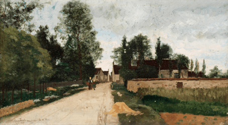 Au Salon de Paris de 1877, il expose deux paysages, Bords du Loing et Environs de Grez-sur-Loing. L’un est vendu au marchand d’art Goupil, tandis que l’autre reçoit les éloges du critique d’art Duranty. Fort de ce succès, Oscar Törnå poursuit son étude de la nature bellifontaine et expose au Salon de 1878 un tableau intitulé La Gorge-aux-Loups, lieu emblématique, qu’il aura pu facilement explorer à partir de Marlotte. La Gorge-aux-Loups n’est en fait pas la seule source d’inspiration que lui procure notre village. En effet, il y peint également Forêt de Fontainebleau, La-Mare-aux-Fées, ainsi que Chemin de Marlotte, reproduit ci-dessous.